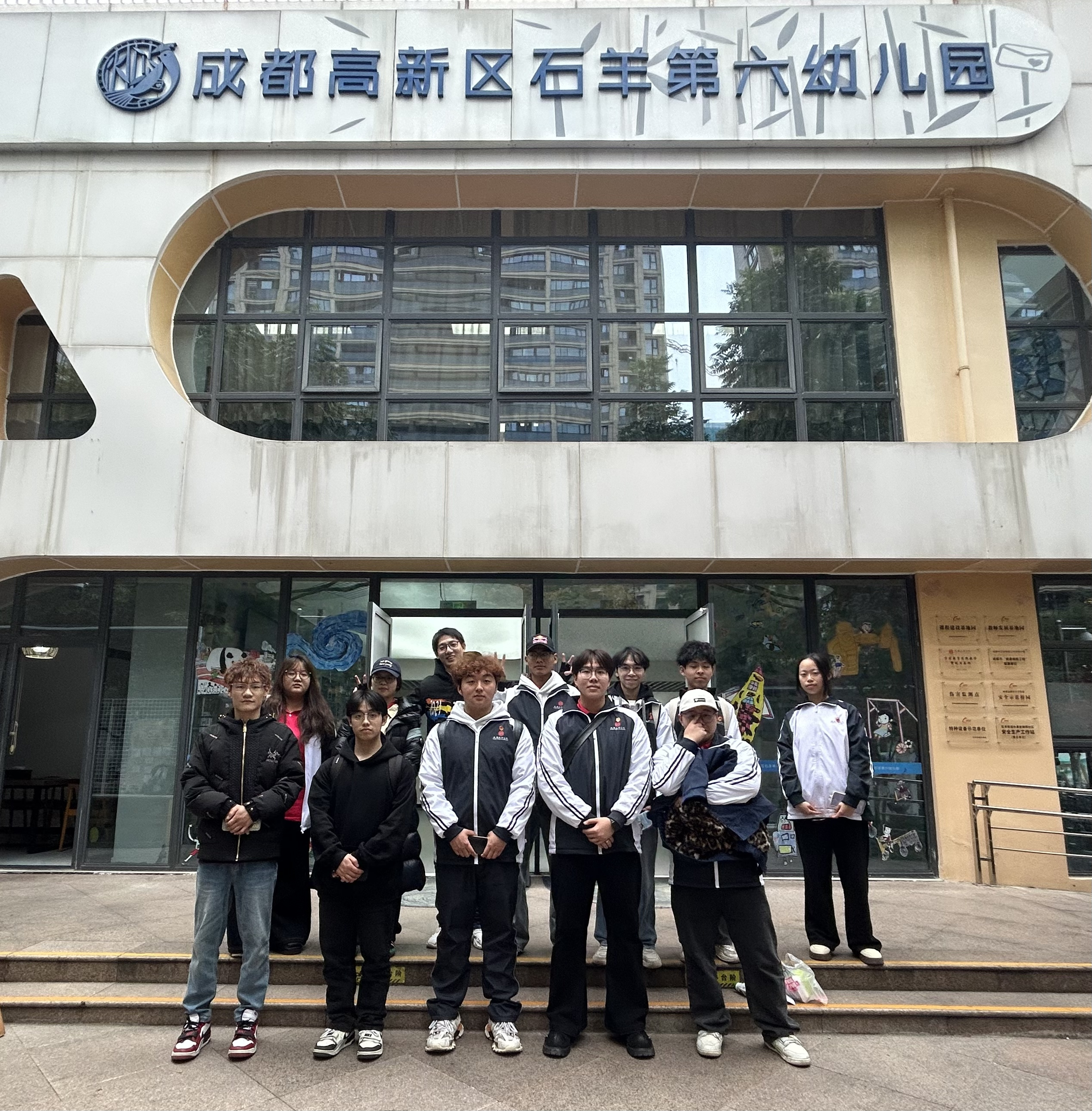 在2025年12月3日教育学院学前教育专业组织25届学前教育专1班B组12名学子,他们怀揣着对幼儿教育的热爱与憧憬,在宁艾伦老师的带领下走进了成都高新区石羊第六幼儿园,开启了为期一天的见习之旅。