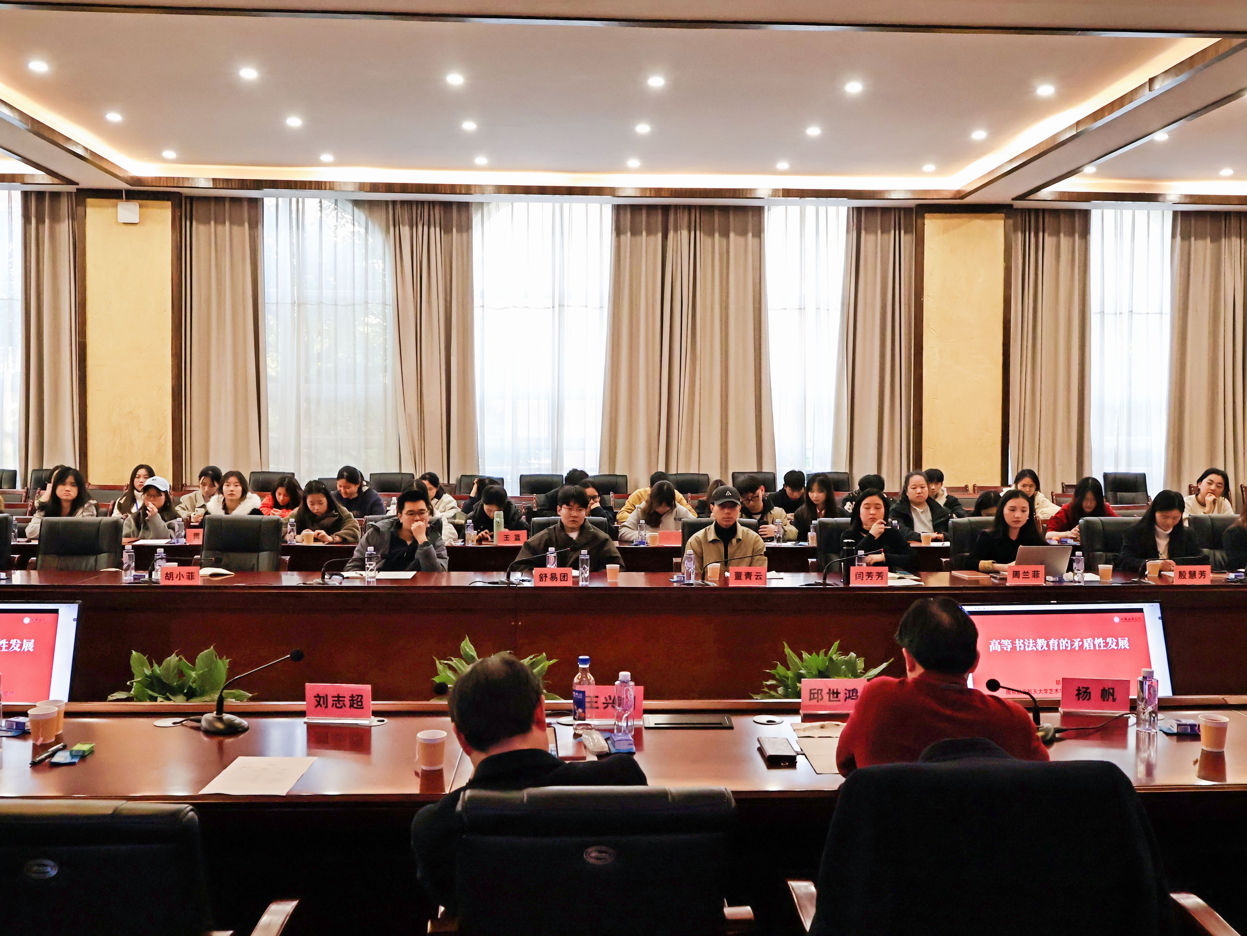 11月27日下午,“研思互鉴:新时代高等书法教育创新发展学术研讨会”在成都文理学院学工楼211召开。本次研讨会邀请到四川省书法家协会副主席、理论委员会主任、成都中医药大学教授王家葵,山东艺术学院、四川大学教授、博士生导师吕金光,南京航空航天大学艺术学院教授、硕士生导师邱世鸿,四川师范大学美术学院·书法学院副院长、硕士生导师、成都市书协主席王兴国,华东师范大学美术学院副院长、博士生导师崔树强,四川大学艺术学院教授、书法研究所所长、博士生导师杨帆,四川美术学院教授、博士生导师李永,济南大学美术学院教授、硕士生导师、山东青年书协副主席王书峰,四川大学艺术学院副教授、绘画系副主任、硕士研究生导师刘志超,重庆城市科技学院教授、书法系主任常雁来,四川文理学院副教授朱中原,成都文理学院教育学院院长卢伟,成都文理学院书法系副教授舒易团,书法系全体教师及部分学生代表参加此次会议。会议由成都文理学院教育学院院长助理薛垲睿和书法系副主任黄琴共同主持。