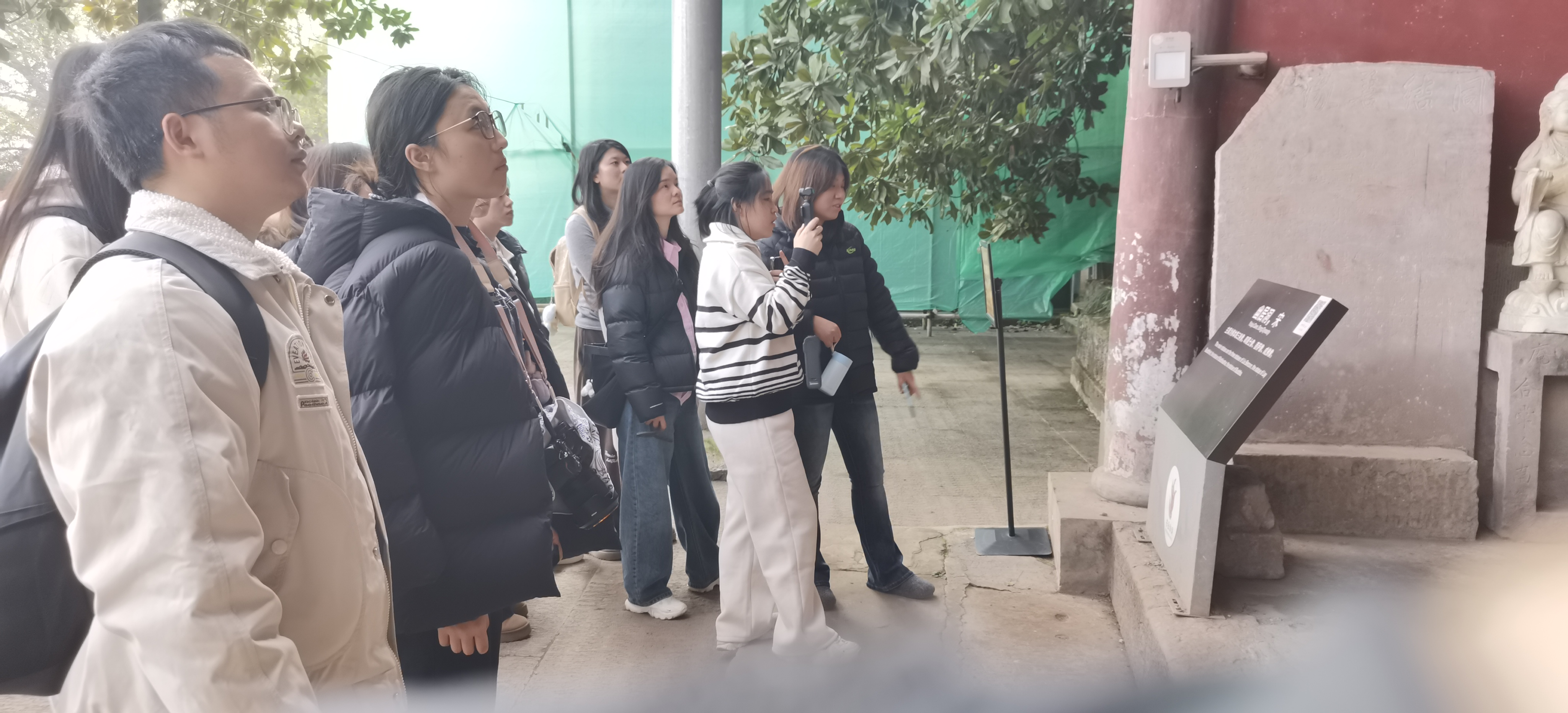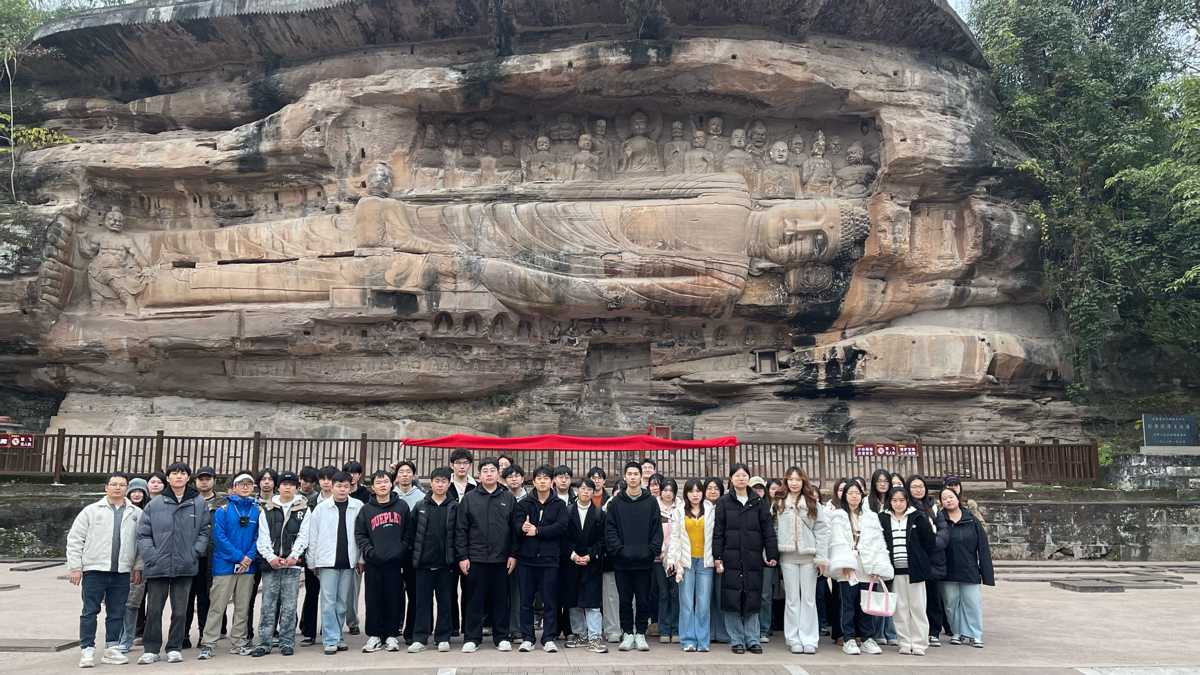 12月11日,在杨振宇、闫芳芳、殷慧芳等老师带领下,教育学院2023级书法学专业学生展开《四川地方书法特色研究》课程外出考察实践活动。师生赴四川省安岳县石刻群开展了深入的田野考察。本次考察聚焦安岳造像石刻及书法遗存,依次调研了茗山寺、毗卢洞与卧佛院三处核心遗址,旨在实地探究摩崖书法的艺术特征与历史脉络。