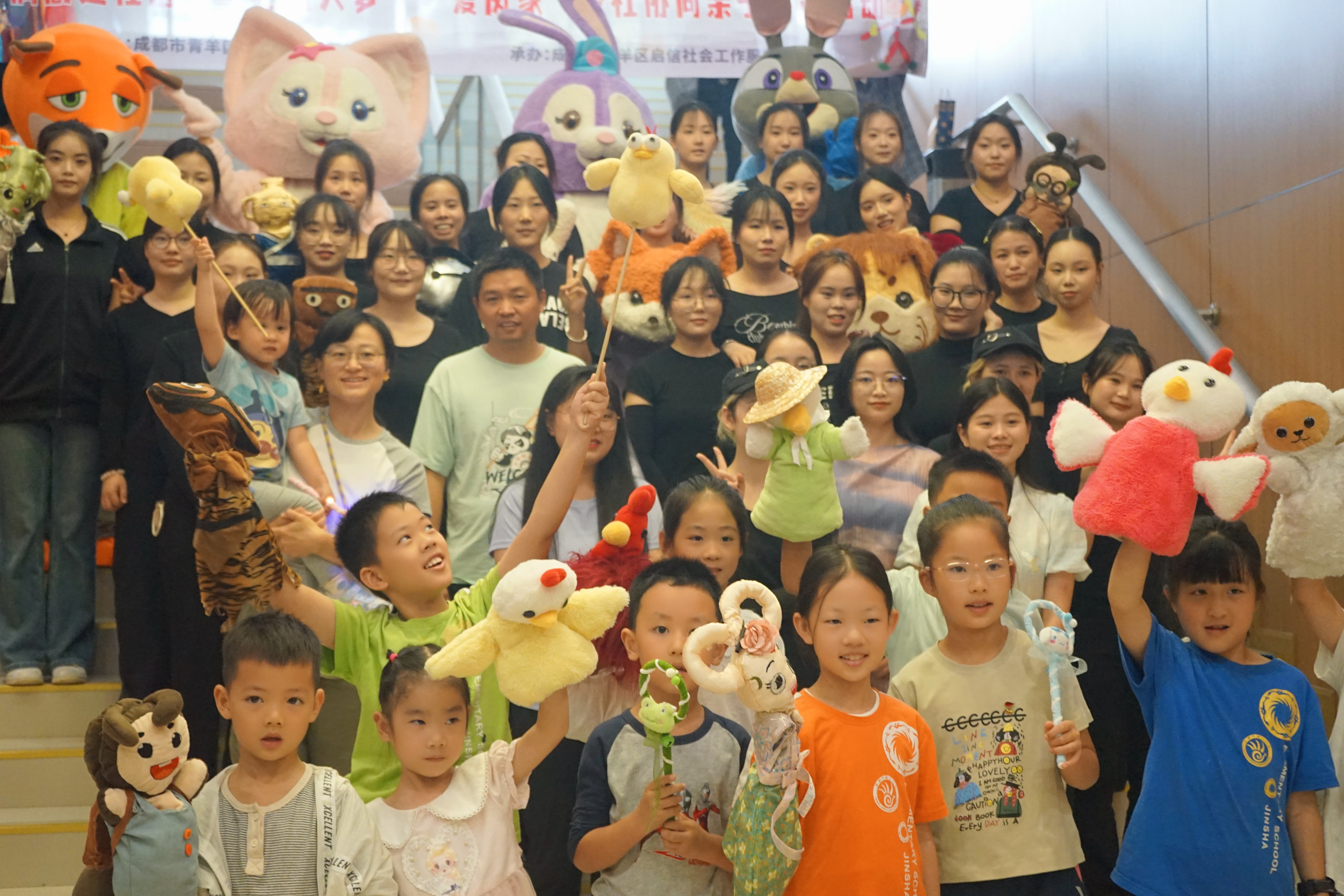 9月27日,成都文理学院教育学院美术教育教研室副主任林雪老师统筹指导,联合金沙街道金凤社区,依托新视域文化产业学院支持,在苏坡东路2号金沙银座“爱凤家·我们的家”开展《偶剧进社区,童心筑大梦》亲子手偶剧活动。15-20组4-10岁儿童家庭欢聚一堂,艺术教育专业学生全程助力,学前教育专业学生倾情演绎,让社区亲子在童趣与艺术中共享陪伴时光。