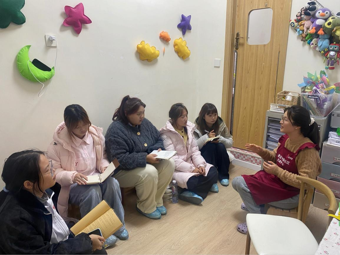 2025 年12月10日,教育学院组织 2025 级早期教育专科同学前往幼儿园见习一天,25 级早期教育专科1 班 C组同学在何梓涵老师的带领下来到了成华区禧宝堂社区托育中心。由园区负责人朱老师介绍园内基本情况与见习要求以及划分个人管理区域。