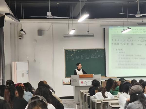 4月8日下午3点,张红燕老师于主教学楼B201教室开展教师资格证面试备考指导讲座,学前教育专业、小学教育专业全体学生参与。