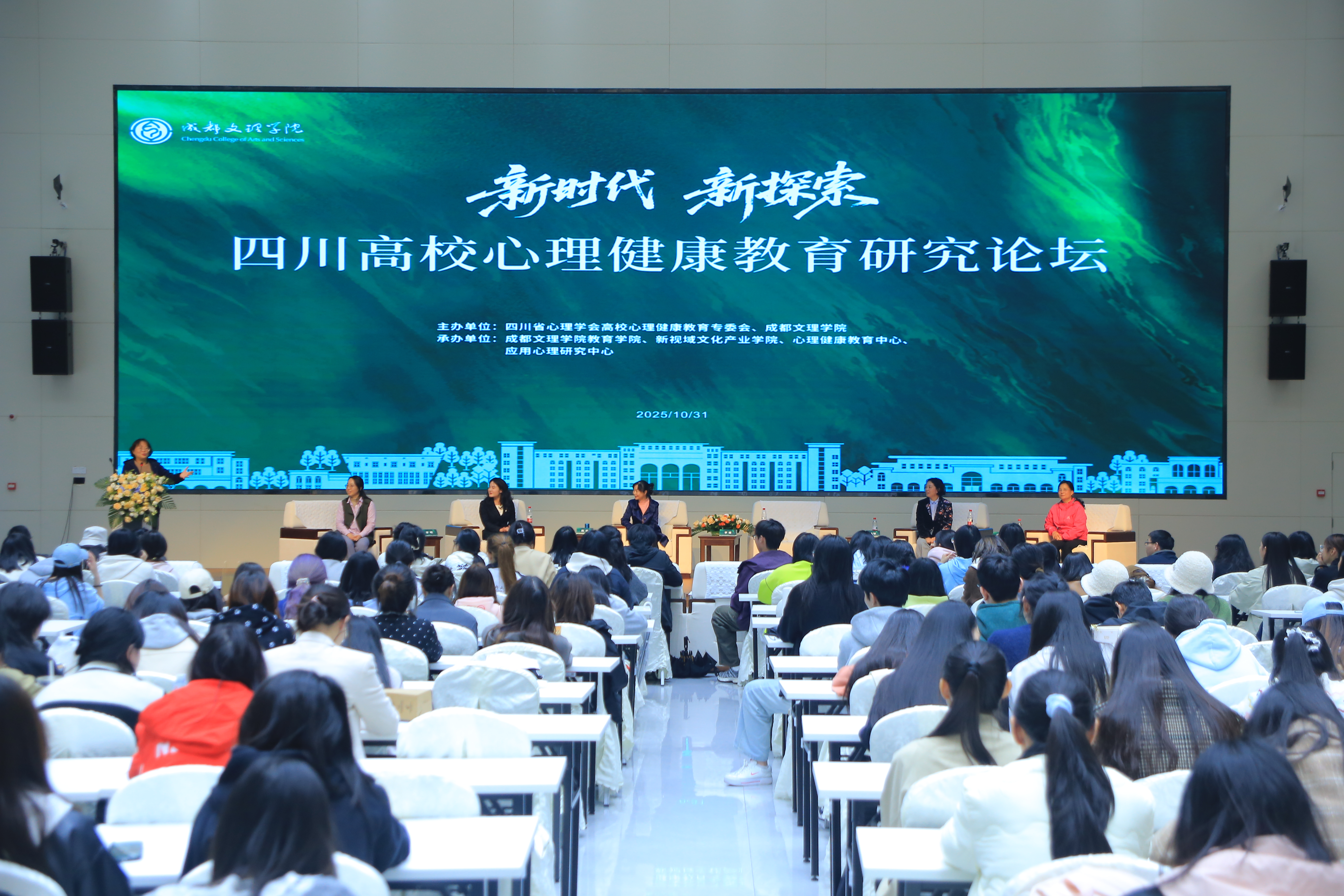 10月31日,"新时代 新探索——四川省高校心理健康教育研究论坛"在我校国际报告厅成功举行。本次论坛由四川省心理学会高校心理健康教育专委会与成都文理学院联合主办,采用线上线下相结合的方式进行,300余名省内大中小学心理健康教育工作者、学生工作者齐聚云端与线下,共同探讨新时代青少年心理健康教育的研究与创新,为推动四川高校心理健康教育高质量发展贡献智慧与力量。
