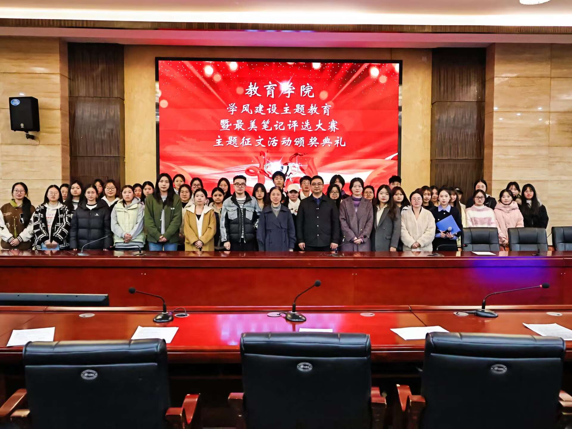 为厚植优良学风,树立学习榜样,激发学子勤学善思的内生动力,11月19日晚上,教育学院在学工部211隆重举行学风建设主题教育暨第三届春季最美笔记评选大赛、“弘优良学风,展文理风貌”主题征文活动颁奖仪式。学院党委书记舒彪、党委副书记兼学工办主任肖媛、各学生党支部书记、辅导员老师及全体获奖学生代表、2025级新生班级学习委员齐聚现场,共同见证荣耀时刻。