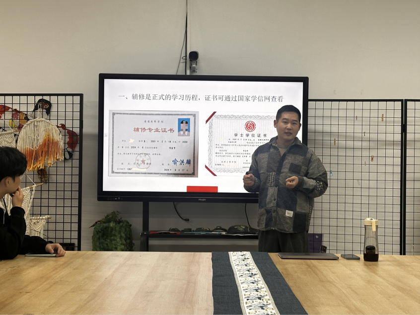 见面会上,王旭燕老师首先聚焦专业核心,详细讲解了艺术教育辅修专业的学习形式与课程构成。他结合专业培养目标,说明课程设置兼顾理论与实践,既包含艺术教育基础理论课程,也涵盖教学技能实训、艺术音乐等实践类内容,让新生清晰掌握未来学习的重点与节奏。