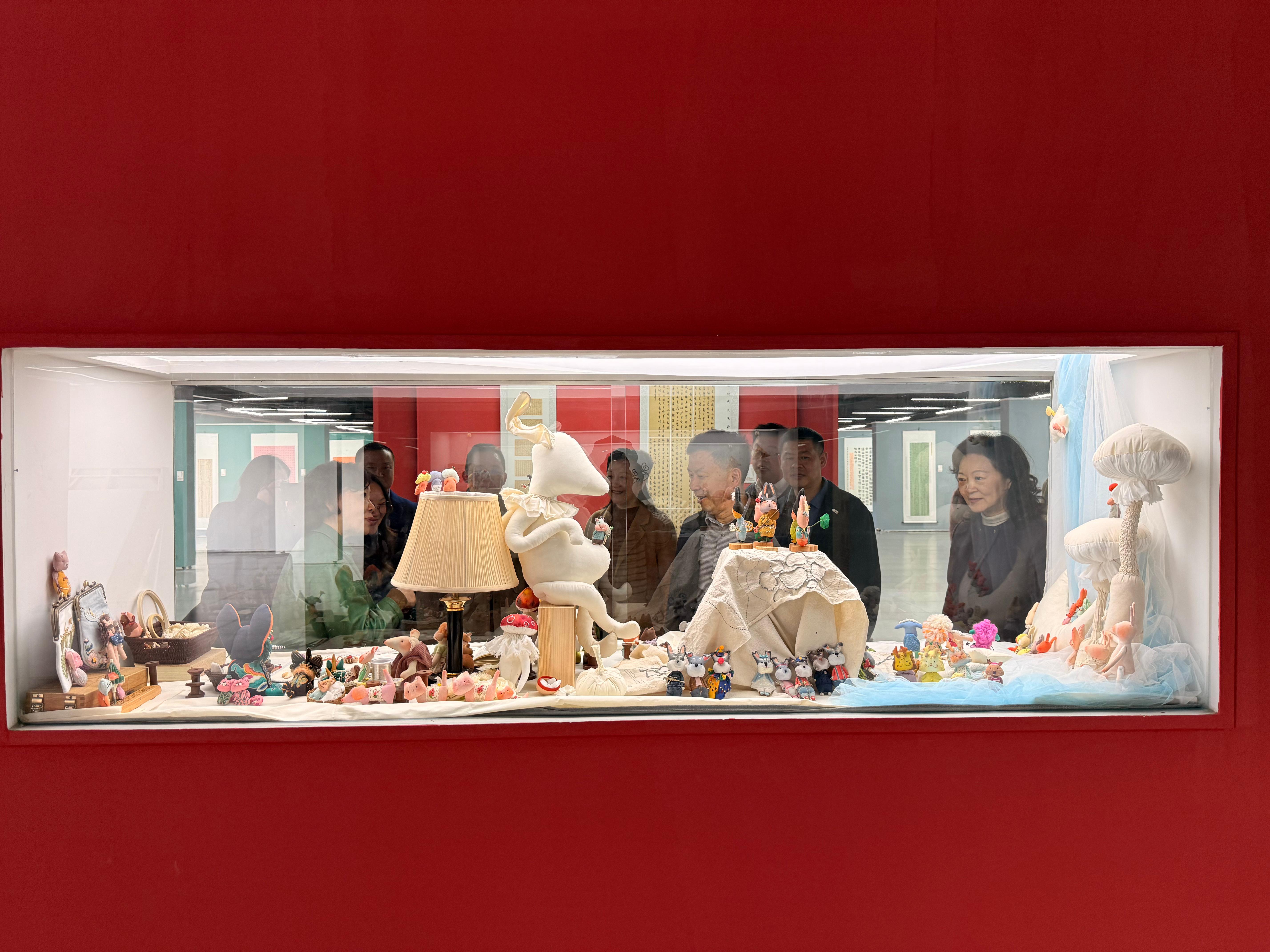开展当天,成都文理学院董事长刘学民、党委书记政府督导专员高华锦、党委副书记常务副校长童精明、副校长妇联主席杨莉,党委副书记纪委书记王亚军,党委副书记 工会主席卢元勇,副校长张昊等均莅临现场参观指导,教育学院院长卢伟和徐巧玲园长介绍了创作理念与工艺技法,各位领导对徐巧玲园长精湛的缝制技艺、深厚的教育情怀给予高度评价,认为此次展览为艺术教育与学前教育专业师生提供了直观的学习范本,对提升学生专业素养、推动美育实践落地具有重要意义。