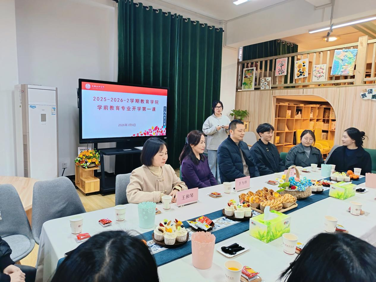 2026年3月11日,成都文理学院新视域文化产业学院、教育学院学前教育专业开展“温暖·融合·引导——特殊个体幼儿在幼小衔接方面的关注与家园协同教育引导”主题开学第一课暨行业专家面对面座谈会。活动立足融合教育理念,聚焦特殊幼儿支持、幼小衔接与家园协同,帮助同学们搭建专业认知框架、明晰职业素养要求。本次活动特邀成都市锦江区学文锦城幼儿园教育顾问茅为琳老师主讲,教育学院院长助理王和琴、学前教育教师出席,与全体同学共话学前教育初心与使命。