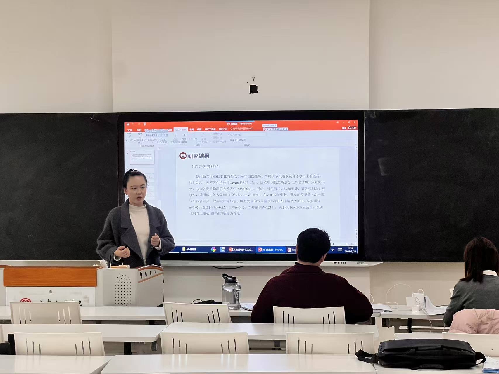 在选题方面,本届学生论文兼具前沿性与实践性。既有结合眼动、脑电等技术的实证研究,也有关注少数民族认同、老年人孤独感、青少年网络成瘾等社会现实问题的课题。所有论文均采用实证研究方法,部分学生深入中小学、社区采集数据。论文组组长吴静老师指出:“答辩的过程更像是学术研讨,学生不再是被动的答题者,而是能主动解释研究决策的对话者。”